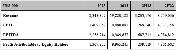 Recommended Dividend for Full Year 2023 is approximately 50% of the Profit Attributable to Equity Holders at approximately US$687 million.