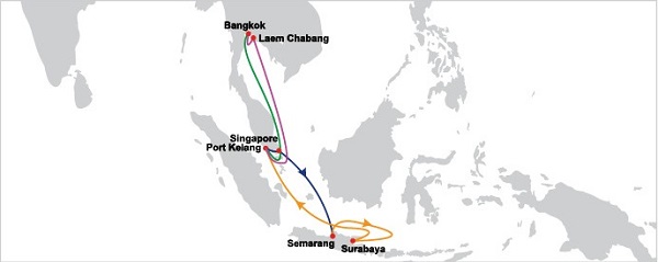 巴生港 - 新加坡 - 三堡垄港市 - 泗水 - 巴生港 - 新加坡 - 曼谷 - 林查班 - 巴生港