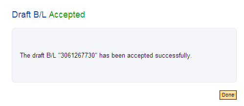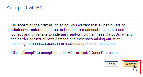 点击”确认” 链接, 表示您已经认同了附件中的提单样本, 此时,系统将根据您的指示直接跳转至”确认提单样本” 页面, 继续点击”确认”, 您将即刻完成提单样本确认. (请见图示):