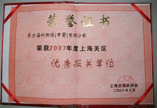 Since the establishment of Customs House Brokage Unit in November 2007, OOCL Logistics (China) Ltd. has been well recognized by customers for its professional and quality CHB service. Recently, OOCL Logistics (China) Ltd was awarded 2007 Excellent Customs Broker by Shanghai Customs Brokers Association.
