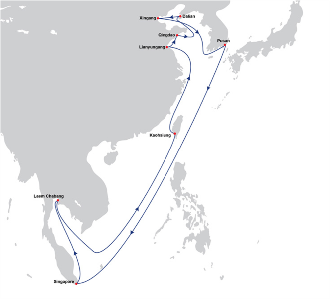 NPS port rotation: Lianyungang-Qingdao-Dalian-Xingang-Pusan-Singapore-Laem Chabang-Kaohsiung-Lianyungang