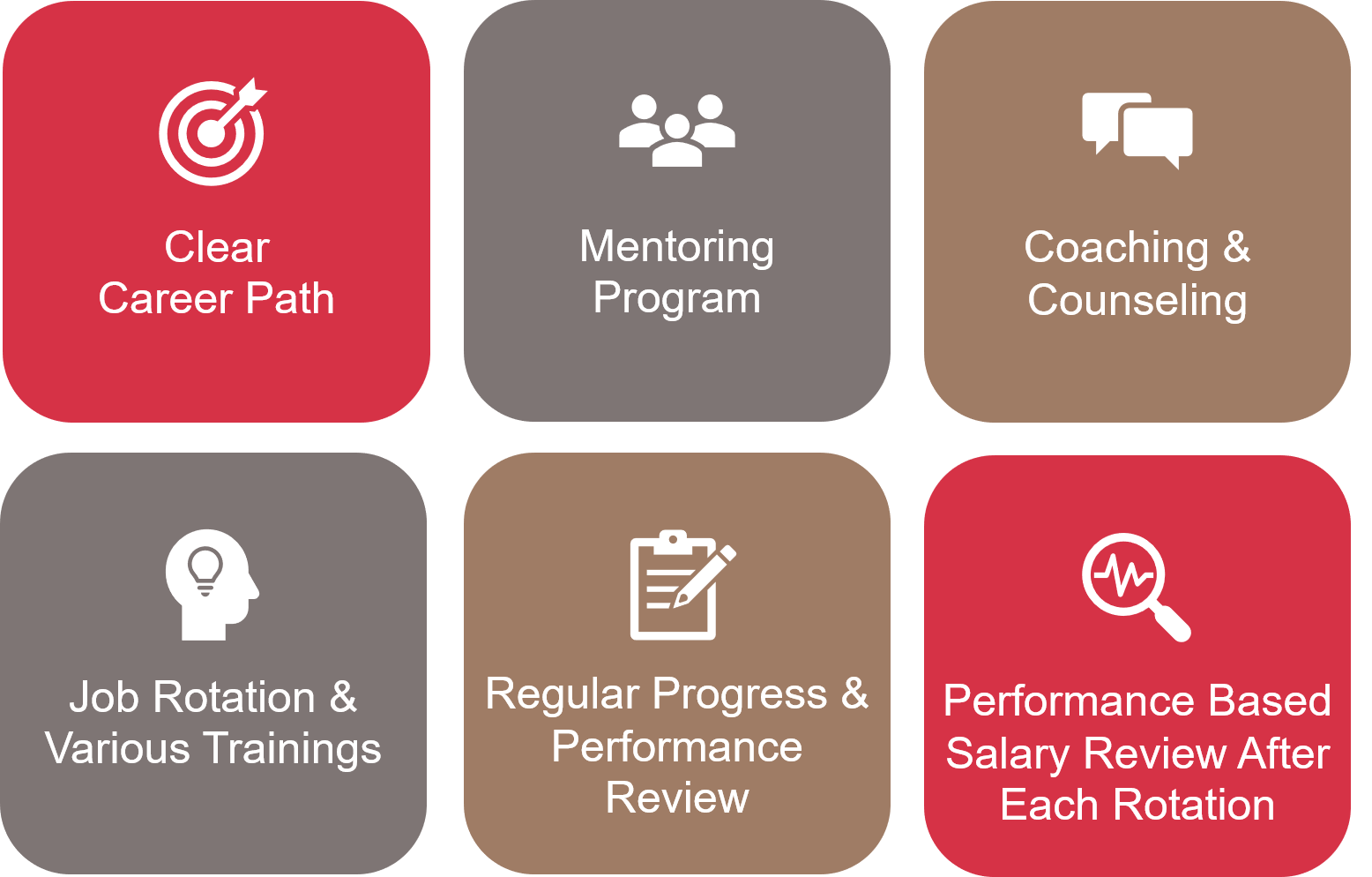 four core values. We respect, invest in, and recognize our people. As a learning organization, we nurture a supportive culture, and provide training and development opportunities for our people to maximize their strength, potential and performance.