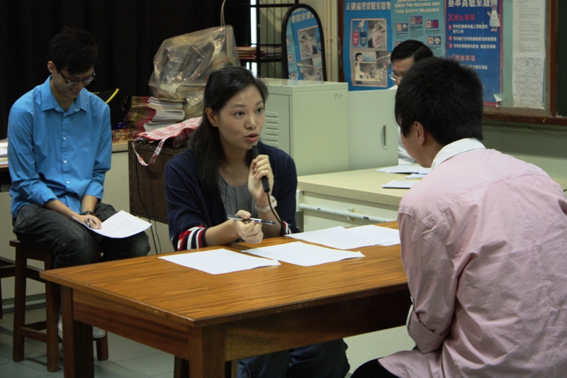 Students gathered in small groups to write cover letters and résumés to apply for a job. Two students were then interviewed by Doris and Heidi. By observing the interviewing process, students got to learn more about the possible questions that could come up in a job interview, and how they could prepare themselves for one.