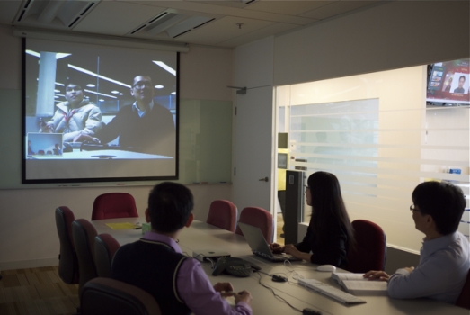 Colleagues working in different development centers can gather together for a face-to-face discussion anytime anywhere, with just a tap or a click on their devices (Mac Mini, MacBook Air, iPhone4, and iPod Touch).