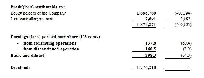 • Special Dividend of US209.3 cents (HK$16.33) per share