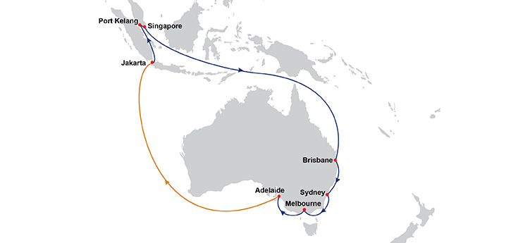ASAL port rotation: Jakarta – Port Kelang – Singapore – Brisbane – Sydney – Melbourne – Adelaide – Jakarta