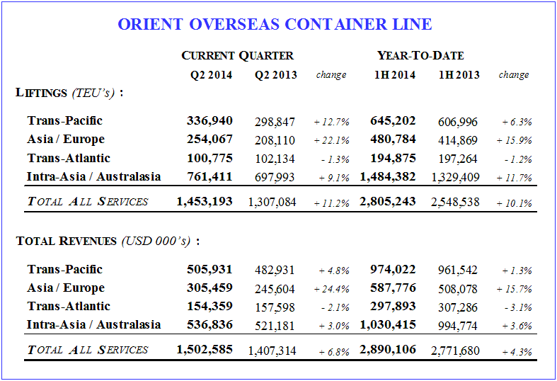 Mr. Tung concluded that, “Given the market conditions, the first half of 2014 was satisfactory for OOIL. During the second half of the year, the Group will redouble its efforts in its focus on cost efficiency and operating margin. As the global economy gradually recovers, there is expectation that the container transport industry will find itself in a more positive operating environment.”