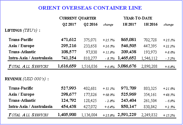 The Chairman of OOIL, Mr. C C Tung, said, “In the first half of 2017, we have begun to see a slow and steady recovery from the tough market conditions that characterised 2016. The results for the period reflect this.”