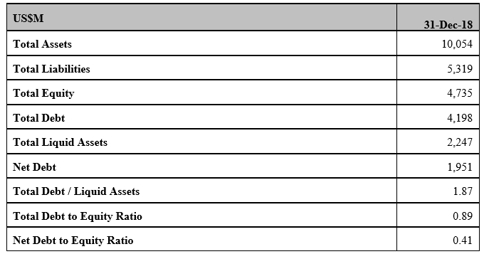 • Liquid assets of US$2.2 billion as at 31st December 2018