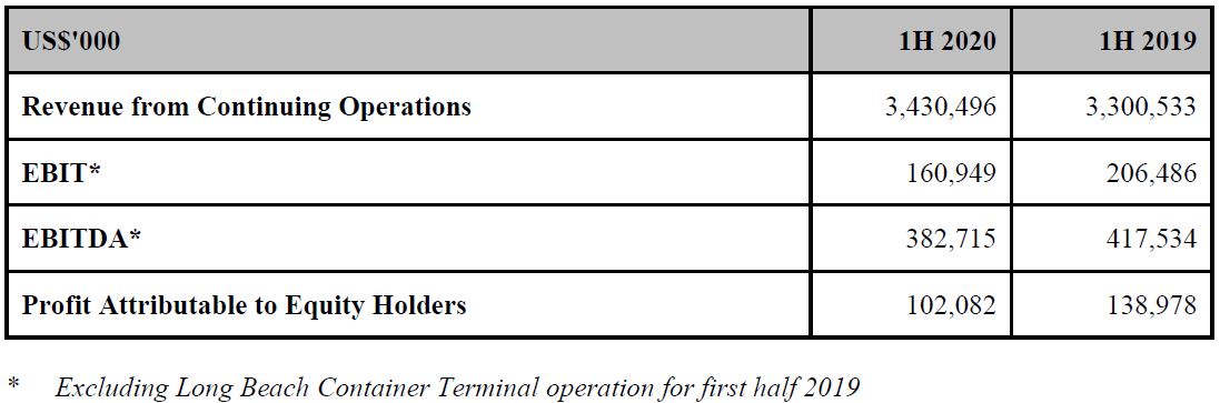 Orient Overseas (International) Limited and its subsidiaries (the “Group") today announced a profit attributable to equity holders of US$102.1 million for the six-month period ended 30th June 2020, compared to a profit of US$139.0 million for the same period in 2019.