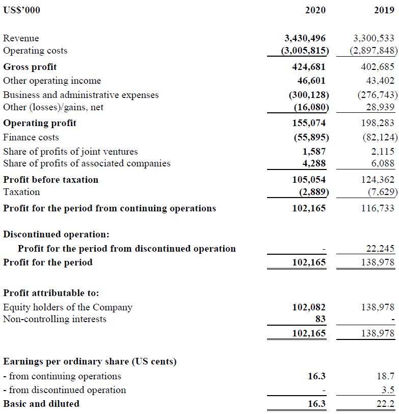 Earnings per ordinary share for the first half of 2020 was US16.3 cents, whereas earnings per ordinary share for the first half of 2019 was US22.2 cents.