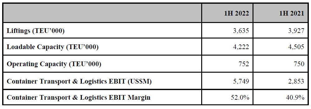 The first six months of 2022 produced the highest half-year revenue in the Group’s history. Compared to the same period in 2021, OOCL’s total liner liftings for the first half of 2022 reduced by 7%, total revenue increased by 61%, and revenue per TEU increased by 74%.