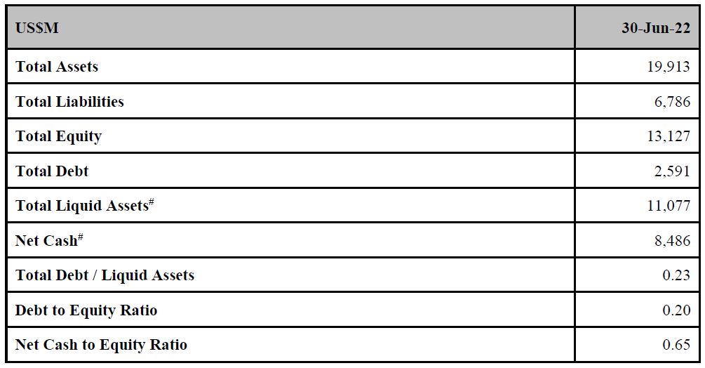 As at 30th June 2022, the Group had total liquid assets of US$11,076.9 million compared with debt obligations of US$805.7 million repayable within one year. The Group remained at net cash position with a net cash to equity ratio of 0.65 : 1 as at 30th June 2022. The Group from time to time prepares and updates cashflow forecasts for project development requirements, as well as working capital needs, from time to time with the objective of maintaining a proper balance between a conservative liquidity level and an effective investment of surplus funds.