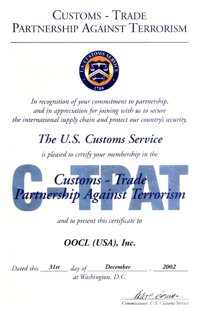 To review OOCL's C-TPAT certification, please click on the thumbnail shown here.