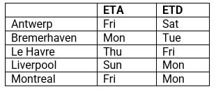 Commencing as from Mv Tuxpan due in Antwerp on March 3rd there will be minor adjustments to the current weekly service: