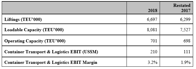 • OOIL’s Container Transport and Logistics business reported EBIT of US$210 million, representing an operating margin of approximately 3.2%.