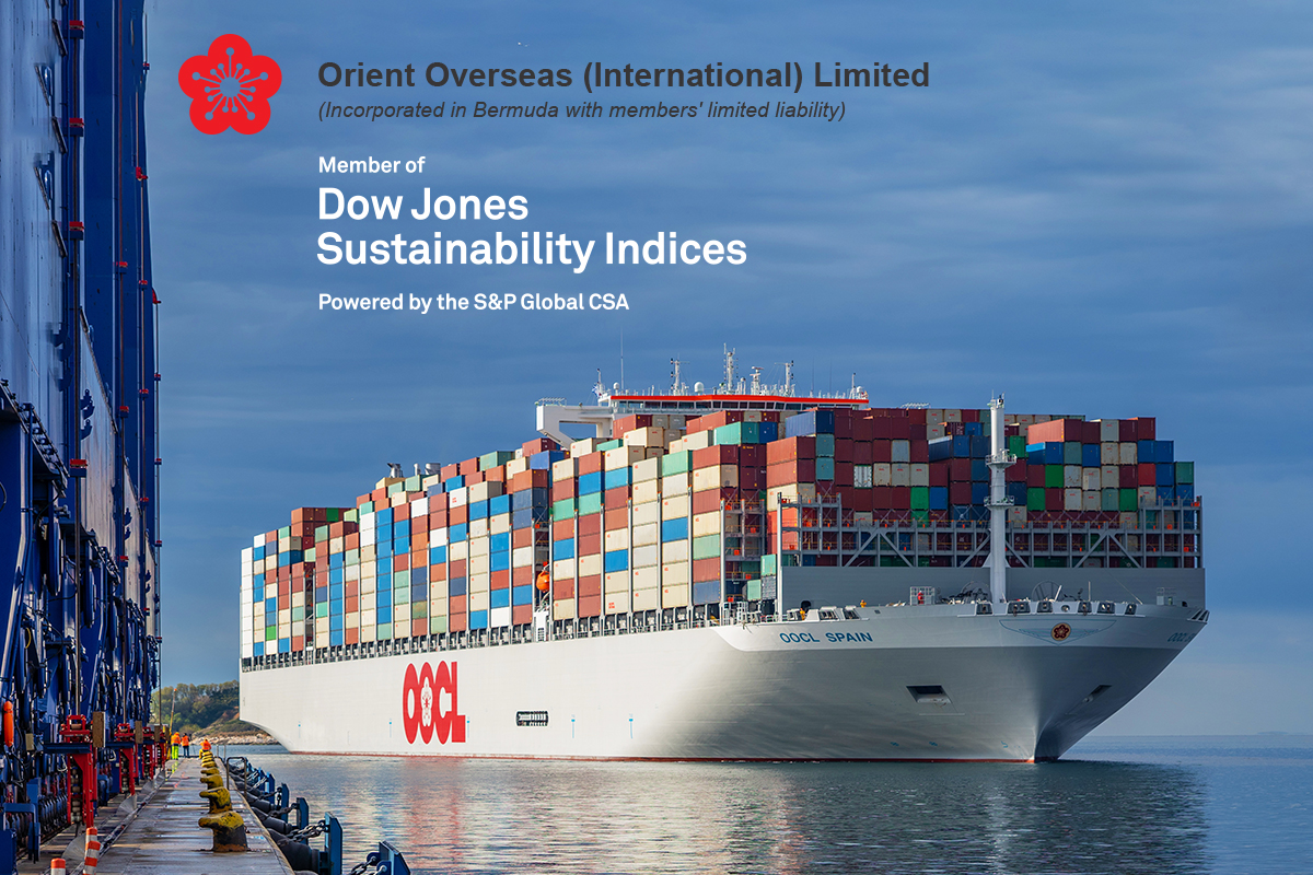 Orient Overseas (International) Limited (HKEX.0316) ("OOIL" or “the Group”), the parent company of Orient Overseas Container Line (OOCL) and OOCL Logistics, was continuously selected for inclusion in the Dow Jones Sustainability Asia/Pacific Index, effective from 18th December 2023.