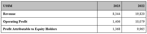 - Cash and bank balances of US$6.7 billion as at 31st December 2023