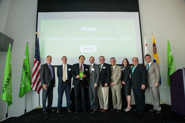 东方海外很荣幸能与其他六家同时参与该两项计划的航运商于二零一四年五月十四日获发奖项。获奖的航商与长堤市市长Bob Foster、国会议员Alan Lowenthal、长堤港代表,署理执行董事Al Moro、副署理执行董事Dr. Noel Hacegaba以及长堤港海港部长 Doug Drummond及 Susan Wise一起出席庆祝典礼。
