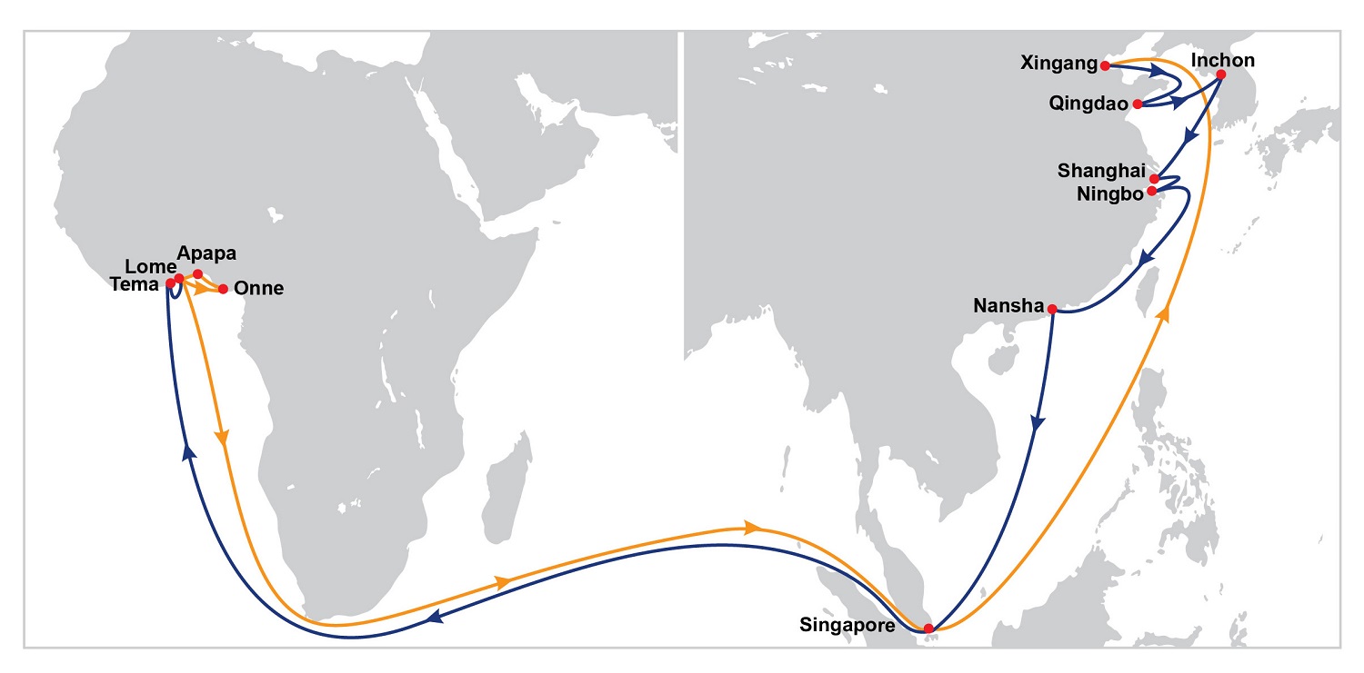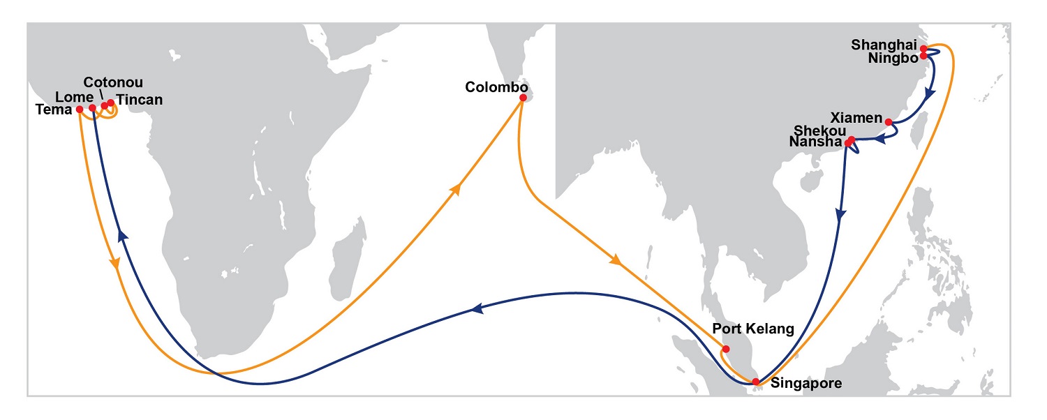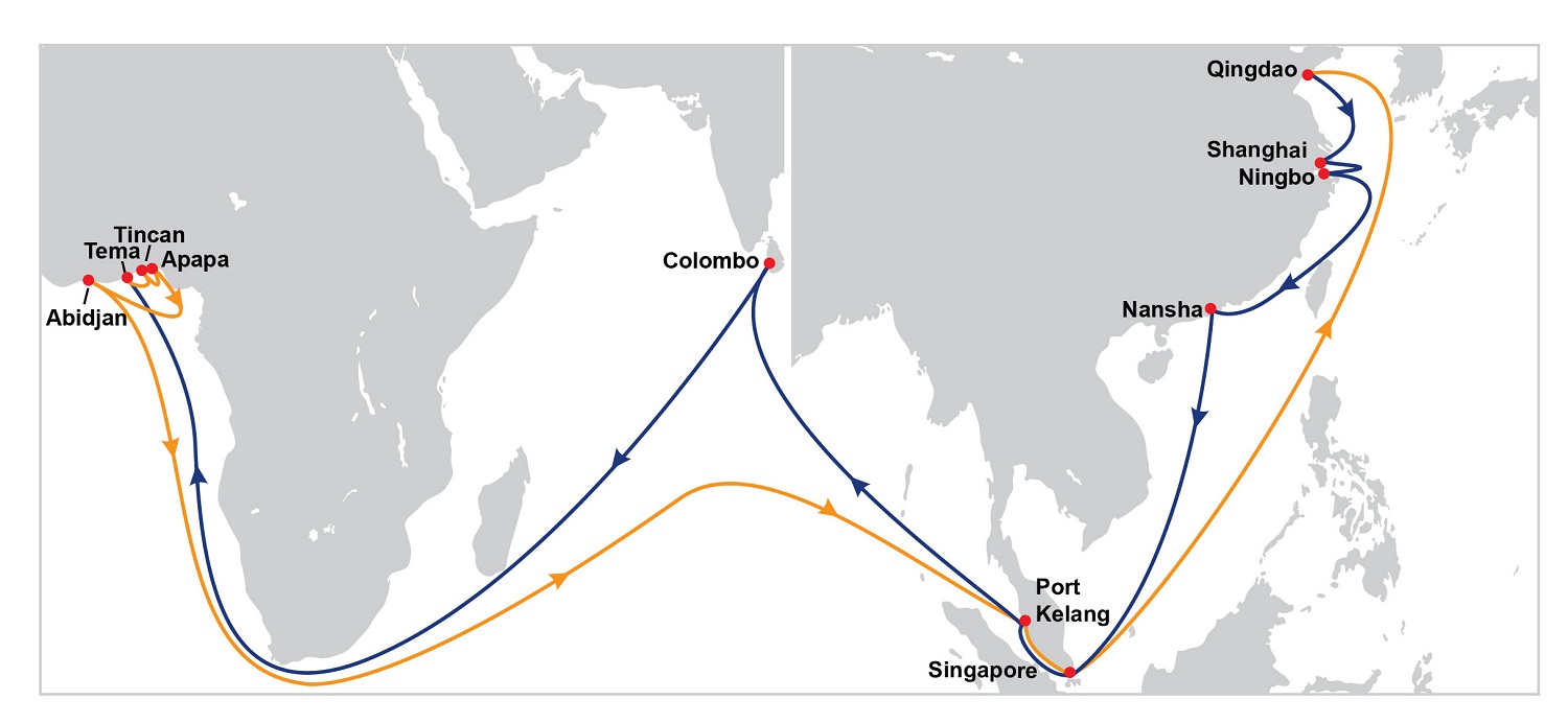 东方海外优化亚洲至西非航线组合尊贵的客户:我们很高兴宣布东方海外下列的亚洲至西非航线组合将于五月中旬起作出优化:亚洲西非 3 (WAF3)配合我司的船舶配置部处,升级后的WAF3能为您的货运提供更具竞争力的航线和船期选择,新航程提供最快捷的中国至廷坎(Tincan)及洛美(Lome)的航运时间,照顾到您的出口外贸需要。新增了Tincan (Port & Cargo码头)作为挂靠点,使WAF3能提供更灵活的集运和多式联运转换的可能性。直挂的巴生港及新加坡港口亦能为您提供覆盖远东地区的多种转运方案。新WAF3挂靠次序:上海 - 宁波 – 厦门 – 蛇口 – 南沙 – 新加坡 – 洛美(Lome) – 廷坎 (Tincan - TICT码头) – 廷坎 (Tincan - Port & Cargo码头) – 科托诺 (Cotonou) – 特马 (Tema) – 科伦坡 – 巴生港 – 新加坡 – 上海新航程将于mv. Vela 251w (五月十九日抵达上海)生效 亚洲西非1 (WAF1)WAF1航线将会优化其挂靠次序,为客户提供往来中国至尼日利亚(Nigeria),加纳(Ghana)及象牙海岸( Cote d’lvoire) 等西非国家的直接连结。升级后的航程将覆盖廷坎(Tincan)及阿帕帕(Apapa)两个尼日利亚码头,为发货人提供多样化的选择。新WAF1 挂靠次序: 青岛 – 上海 – 宁波 – 南沙 – 新加坡 – 巴生港 – 科伦坡 – 特马(Tema) – 廷坎 (Tincan - TICT码头) – 阿帕帕 (Apapa) – 阿比让 (Abidjan) – 巴生港 – 新加坡 – 青岛新航程将于mv. COSCO Fukuyama 087w (五月十四日抵达青岛)生效亚洲西非 2 (WAF2)新WAF2的挂靠次序覆盖尼日利亚的奥纳(Onne)并提供更具竞争力的航运时间,新增设的特马(Tema) 港口令航线能够在二十二天内连接亚洲和西非。新WAF2 挂靠次序: 新港 – 青岛 – 仁川 – 上海 – 宁波 –南沙 – 新加坡 – 特马(Tema) – 洛美(Lome) – 奥纳 (Onne) – 阿帕帕 (Apapa) – 洛美(Lome) – 新加坡 – 新港新航程将于mv. Kota Lazim 037w (五月十七日抵达新港)生效如有任何疑问或查询,欢迎联系我们在您地区的客服代表。
