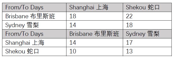 A3X挂靠次序:上海 – 蛇口 – 布里斯班 – 雪梨 – 上海