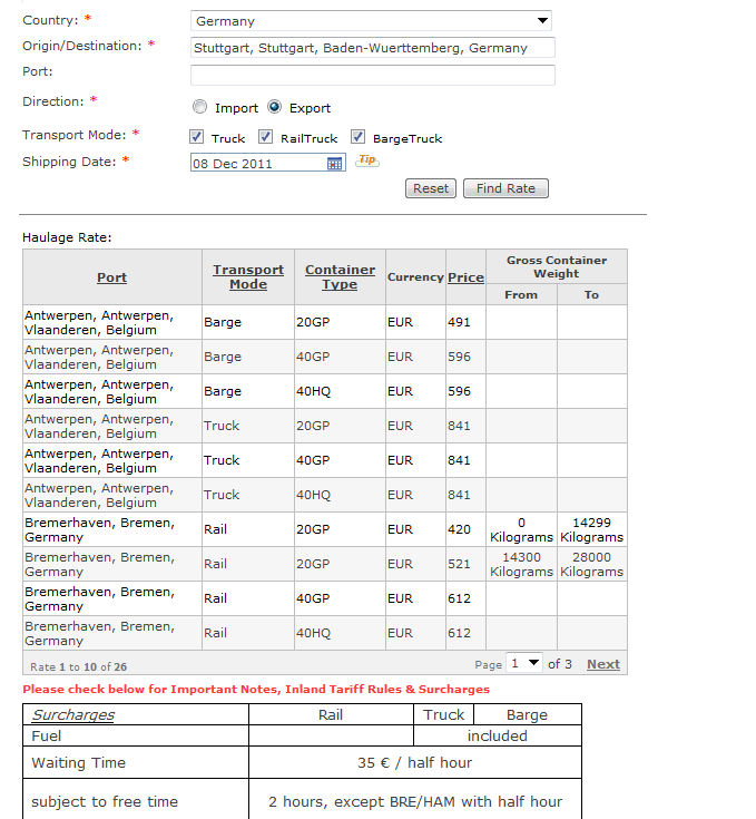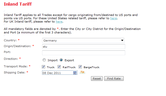 客户在进行简单的信息输入之后,即可获取相关内陆费用: (打星号部分为必填项)
