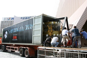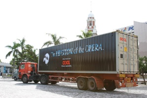 东方海外将二十二个装载着「歌声魅影」华丽道具、服装及布景的集装箱于六月二十七日,星期二,下午四时,运抵香