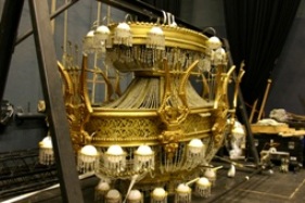 在众多令人目眩的道具中,最令人曯目的是一座仿照巴黎歌剧院独有,由六千颗水晶制造而成的巨型水晶吊灯。水晶吊灯阔三米,重量逾吨。原来的水晶吊灯须由五名技师花上四星期的时间装嵌而成。
