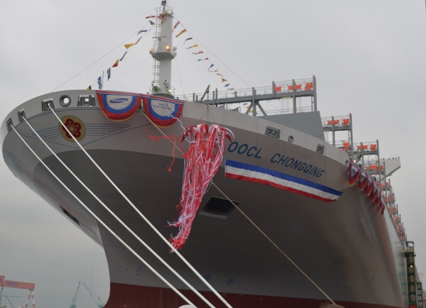命名为「东方重庆」号的巨轮于一众嘉宾及支持东方海外购建该轮的公司高层前在南韩的巨济岛三星造船厂首次亮相。