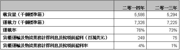 • 二零一四年貨量增長令人鼓舞,尤以主要東西向航線為甚。