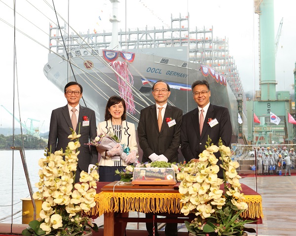 今天东方海外为其在韩国巨济岛的三星重工船厂建造,装载量达21,413个标准箱,船身注册编号H2173的集装箱货轮举行命名典礼。 这命名为「东方德国」号的超大型集装箱货轮为东方海外所购建的六艘21,000个标准箱级别的货轮的第二艘,这批新货轮的加入,对促进我们船队竞争力及效率非常重要。