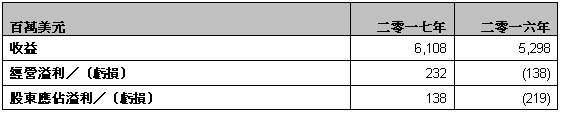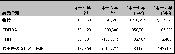 二零一七年度全年財務及營運摘要