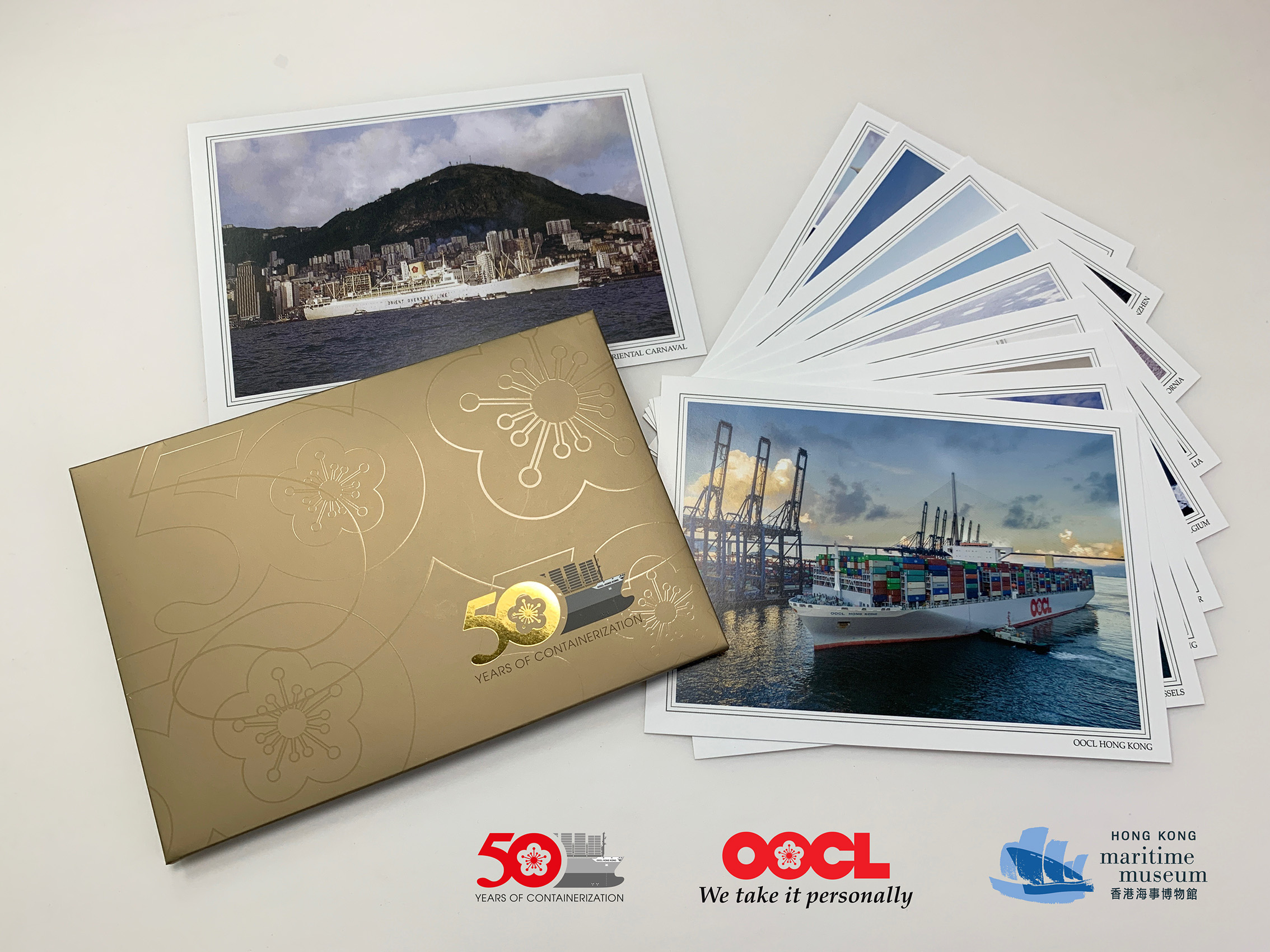 为了纪念集装箱化五十周年,东方海外特别制作了一套精美明信片套装供大众收藏。为了回馈社区以及支持香港海事博物馆,指定数量之明信片套装现正于香港海事博物馆进行义卖,有关收益将全数捐赠予支持该博物馆的工作及发展。部份明信片套装亦已透过香港海事博物馆赠予参观博物馆的社区团体,包括学生、长者和康复者。