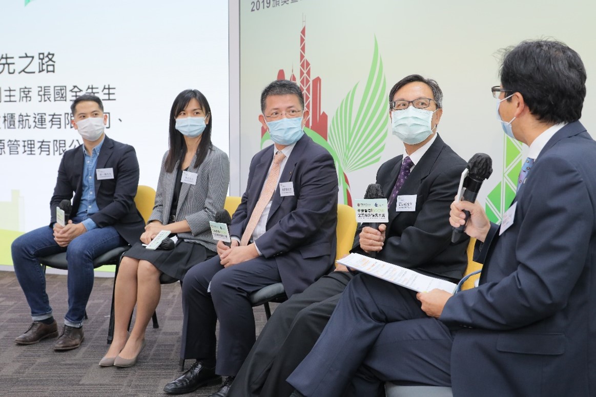 冯国华先生(中间)在活动上分享东方海外如何在环保工作上保持创新