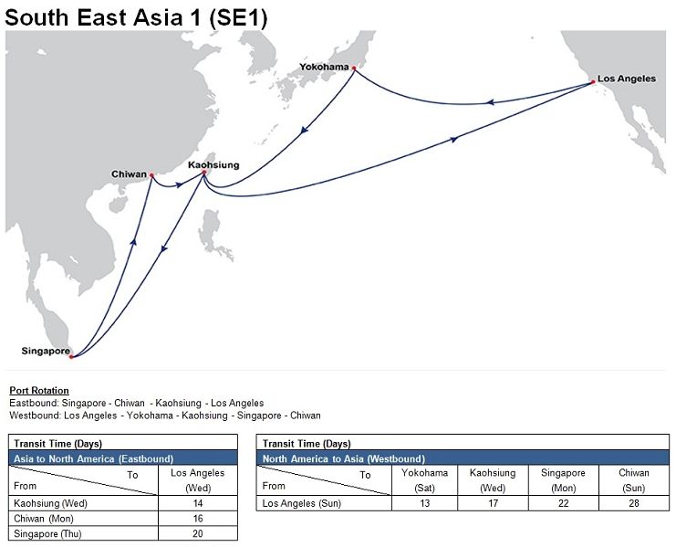 - South East Asia 1 (SE1): Singapore – Chiwan – Kaohsiung – Los Angeles – Yokohama – Kaohsiung – Singapore